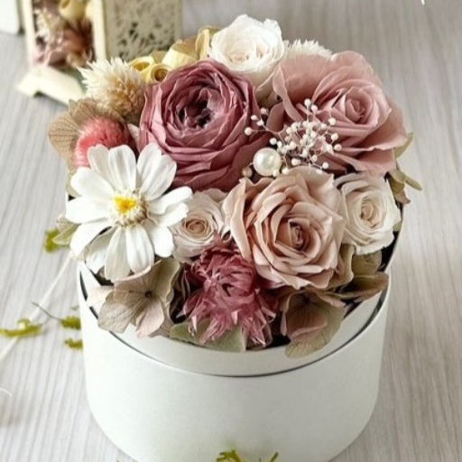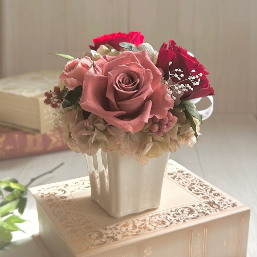 プリザーブドフラワーは、生花の美しさをそのまま長く楽しめるよう、特殊な加工を施したお花のことです。水やりの手間もなく、大切な方へのギフトや、ご自宅のインテリアとして人気のスタイルです。