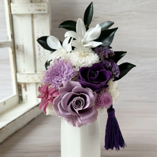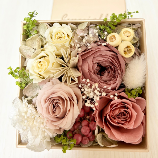 プリザーブドフラワーは枯れることがないため「幸せが長く続くように」という願いを込めた記念品として、非常に喜ばれています。