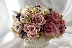 ご検討中の方にはぜひ、美しさが続くプリザーブドフラワーのアレンジメントはいかがでしょうか?